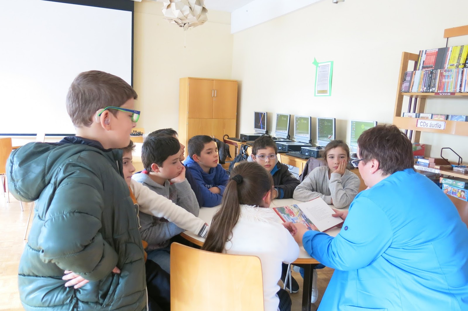 A biblioteca desloca-se a todas as salas de aula para sugerir e disponibilizar livros para as Férias
